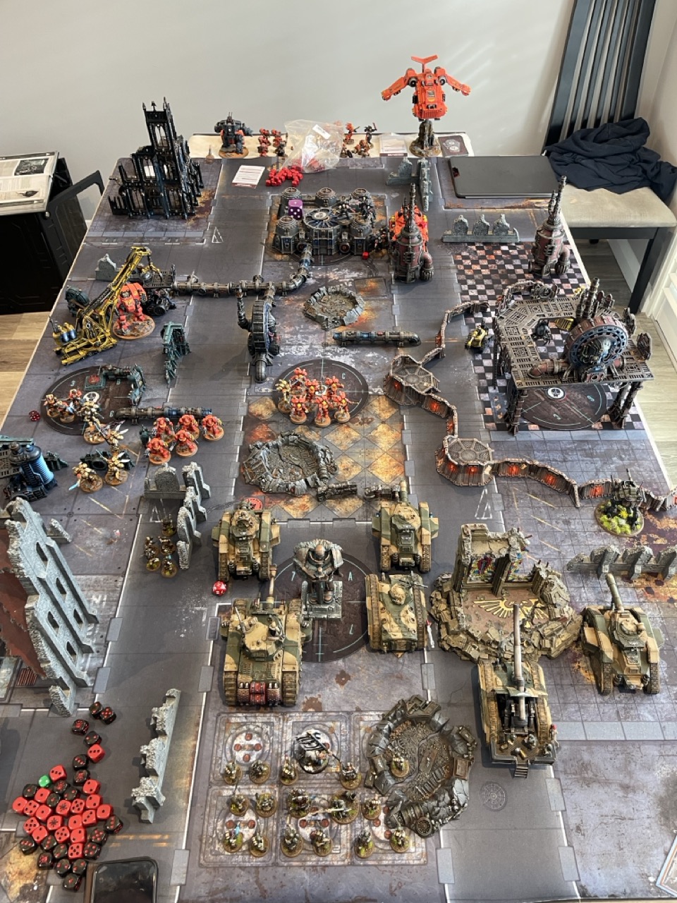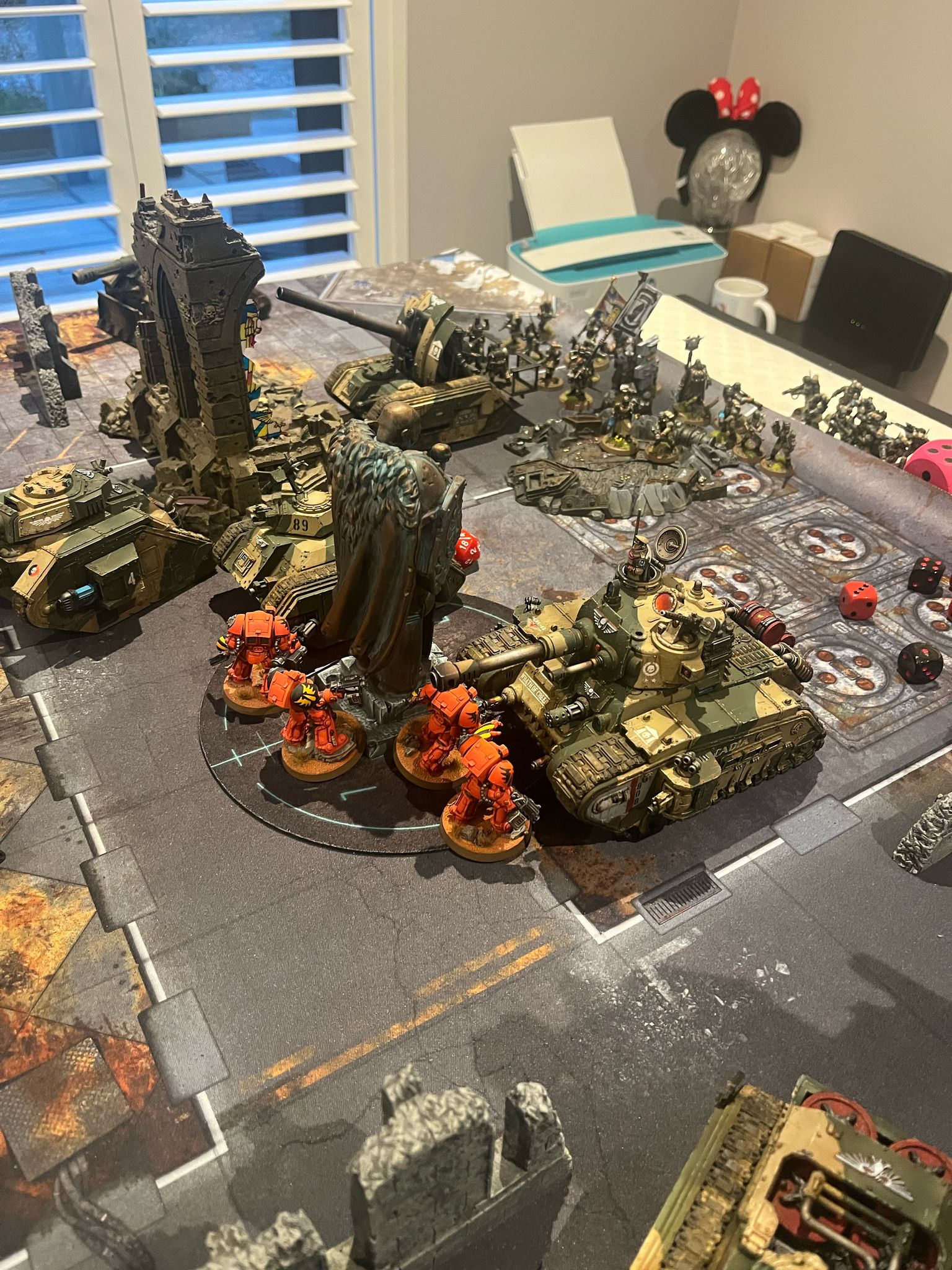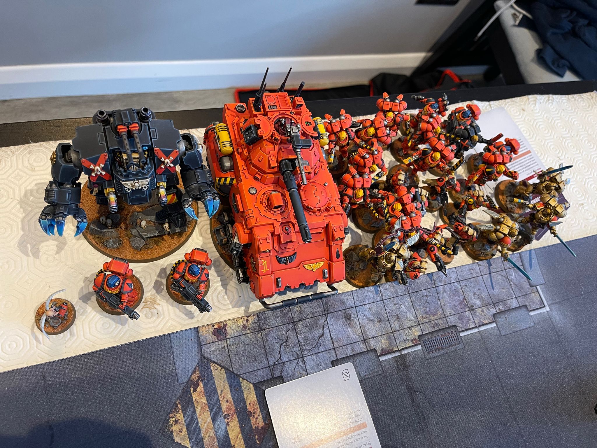 Dunk: In true Cadian fashion, I dug in and refused to back down, determined to keep swinging until the very end. I delivered devastating blows to the Blood Angels, managing to destroy both the Storm Raven and the Terminators— I wanted revenge on these units after the trouble they had caused me.