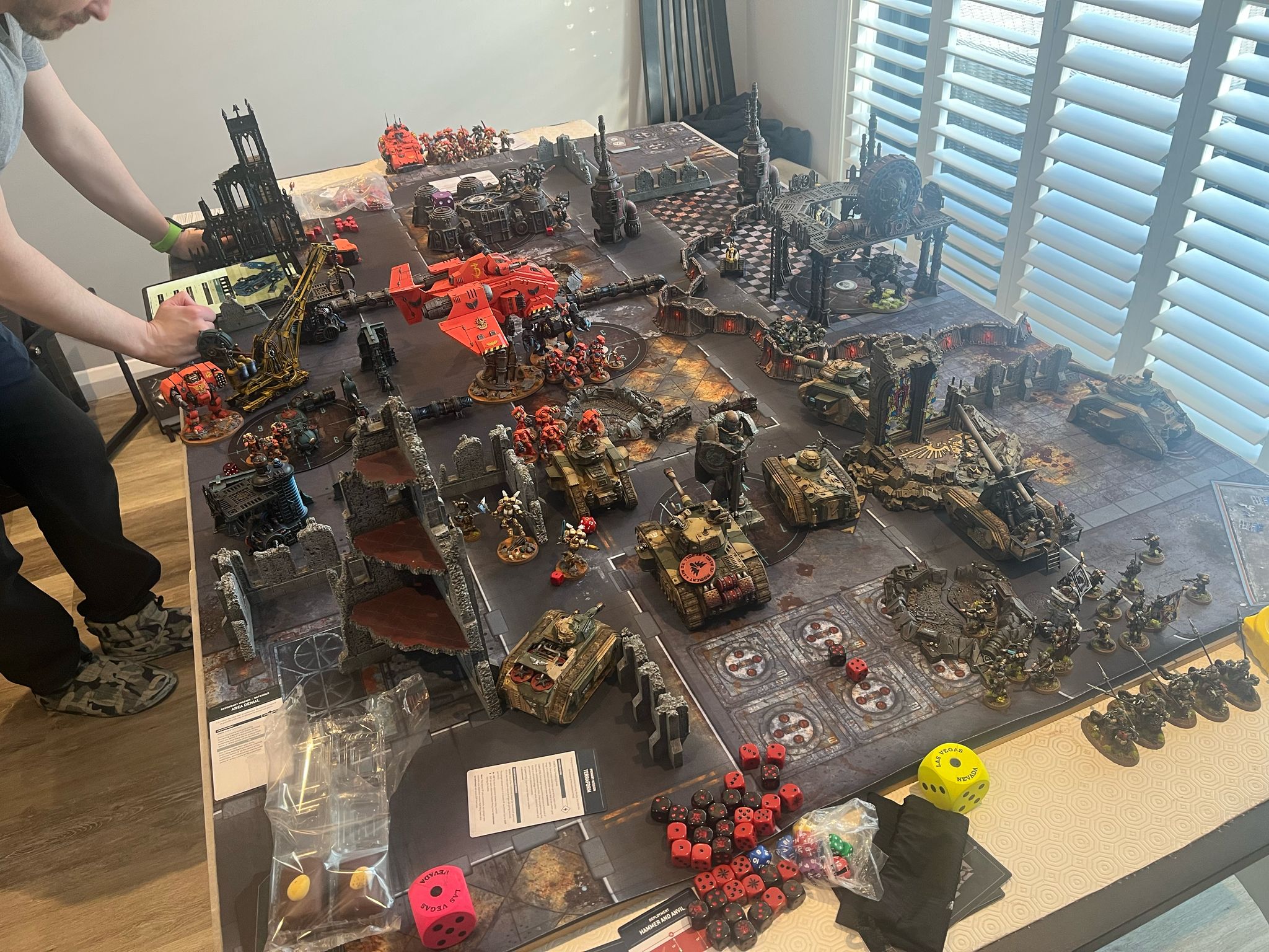 Dunk: The games themselves were all a fantastic experience. While narratively driven, Garfy and I made a point of playing as close to the rules as possible, as we’re still learning the game. A real curveball came just days before our final battle when the balance data slate dropped, forcing us to adjust our force compositions. The patch obliterated our carefully planned 2000- point lists and even left some of recently painted and beloved units stuck on the shelf, unable to fit within the new points limit. It was frustrating, sure, but not the end of the world—those units will certainly find their place in future games. Plus, we thoroughly enjoyed painting our forces and characters, which makes it the perfect excuse for another round!
