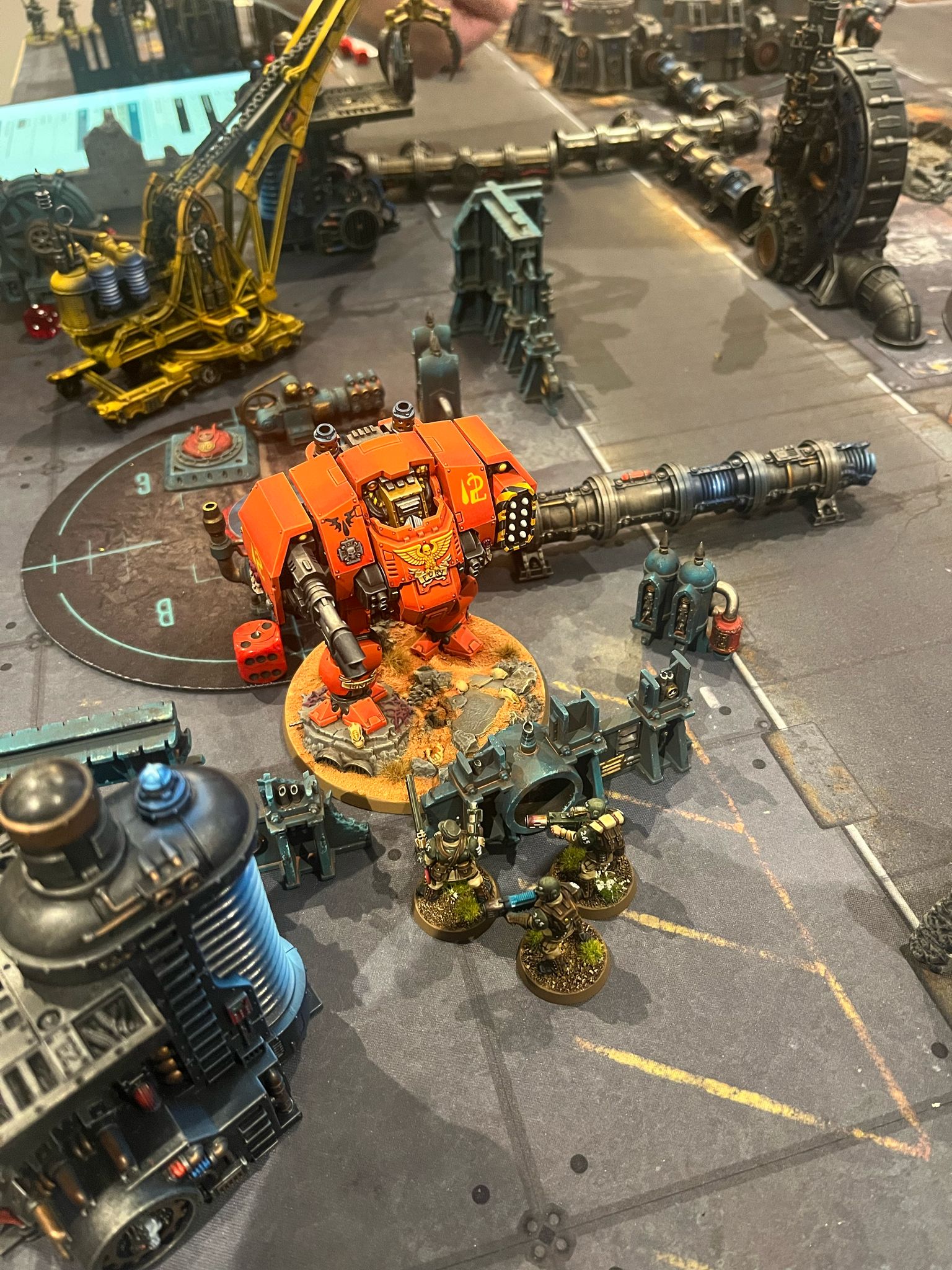 Garfy: What Dunk has failed to mention here is that in his turn 3 fight phase, he chose to fight first with the Rogal Dorn Tank Commander, managed to hit and get 2 wounds through. Dante just had to make 2 saves of 2+ and he would easily take the Rogal Dorn’s final 2 wounds… I rolled a double 1 and had no CPs for a command reroll. Dante had fallen. At least the Terminators had finished off the Demolisher.