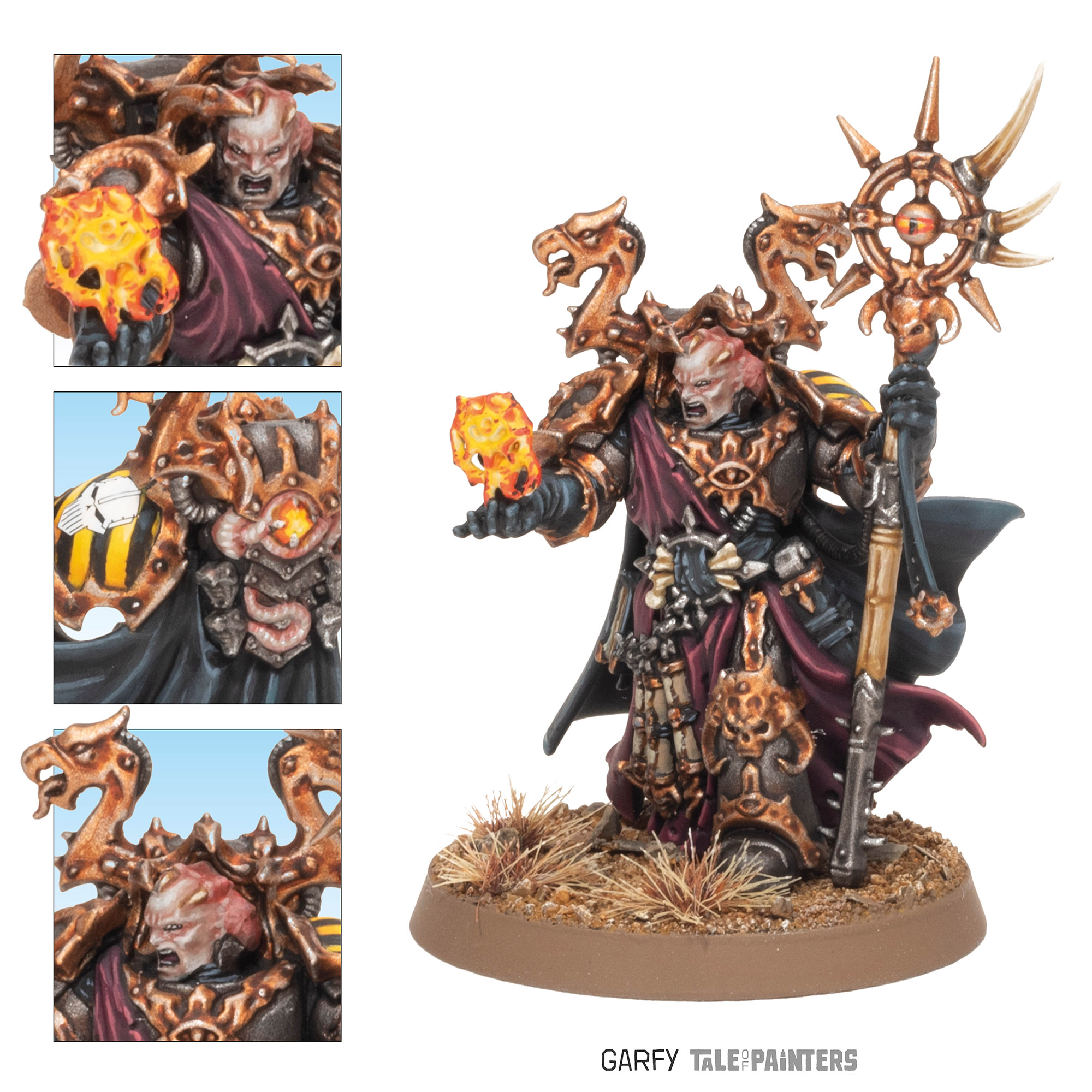 Invoking the Dark Gods, a Chaos Sorcerer immolates his foes with warp flame.